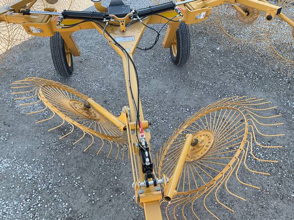 Just like other Vermeer innovations, the VR820 carted wheel rake combines high performance and superior reliability with features that make it easy to operate. Rake field after field with ease, thanks to a rugged channel tongue with adjustable hitch heights and telescoping tool bars that allow you to change raking and windrow widths with ease. Patented rubber torsion toolbar suspension requires no tools. Single side raking is easily achieved by simply turning a valve.